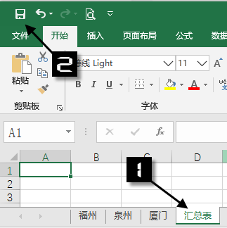 新建一个工作表,重命名为“汇总表”,然后保存一下。